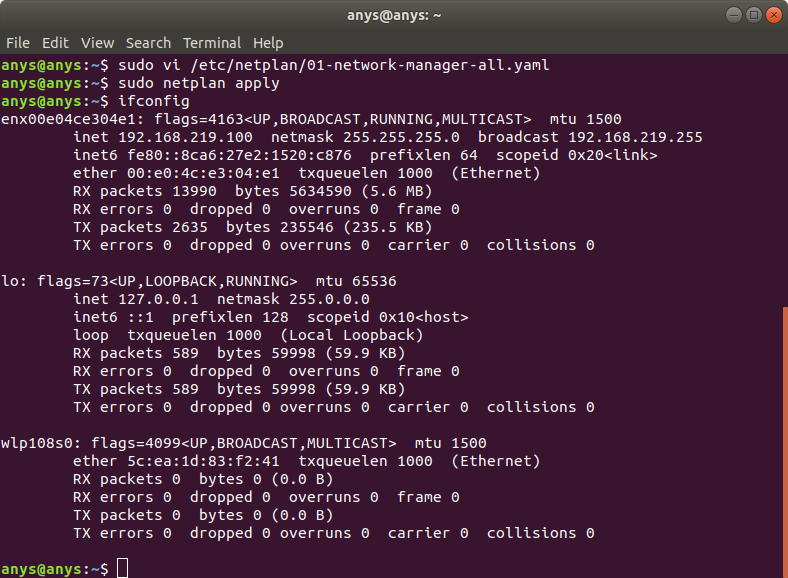sudo vi /etc/netplan/01-network-manager-all.yaml